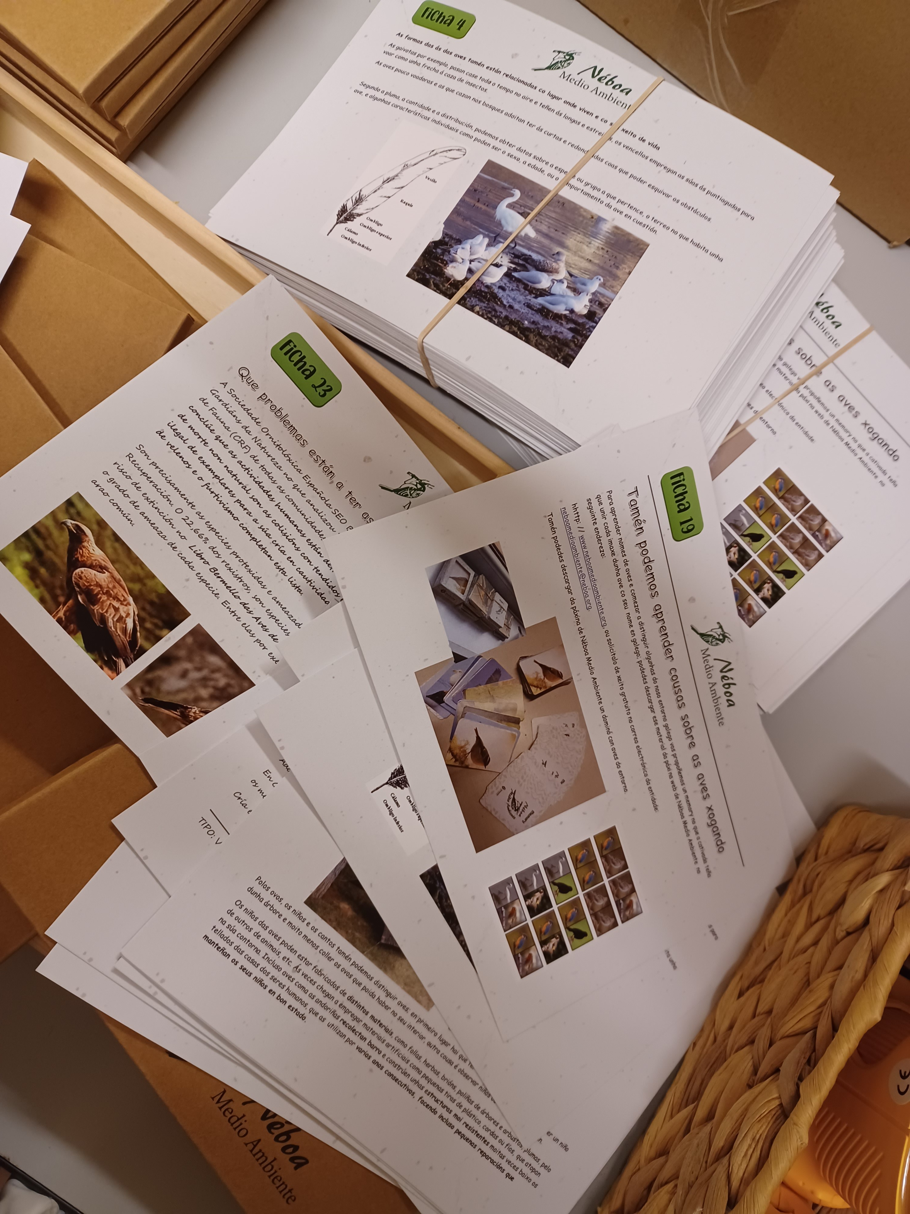 Despois de dous meses de intenso traballo xa temos no local os primeiros exemplares das unidades didácticas adicadas ás aves que vimos de deseñar na entidade. Trátase dun material didáctico que intenta recopilar información xeral sobre as aves moi simplificada para poder aproveitala con nenos en edade escolar e información para mestres, educadores ambientais e familias que queiran introducir aos seus fillos no mundo da ornitoloxía, un material sinxelo, sen grandes pretensión, pero útil e manexable.